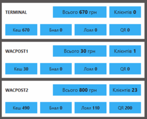 На кожній панелі відображається інформація про поповнення по кожному посту, аксесуарам та терміналу (для терміналу тільки кеш):