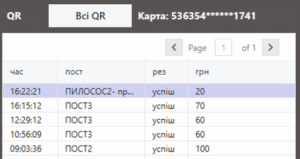 Сторінка Журнал по QR містить інформацію про стан проплат з системи Portmone за вказану дату. Доступ до журналу можна отримати в кабінеті, навіть якщо система керування мийкою відімкнена чи не підключена до мережі Інтернет.
